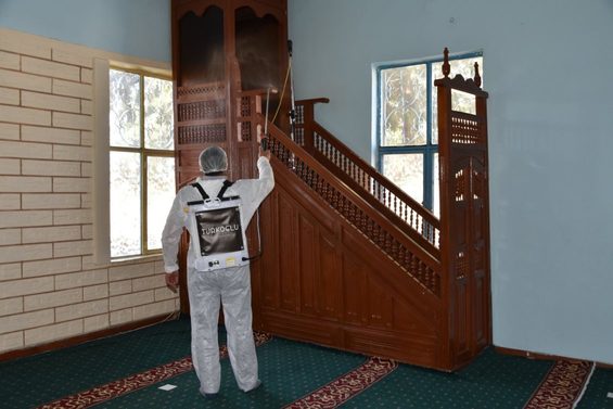 Türkoğlu Belediyesinden yapılan açıklamada: ” ekiplerimiz, korona virüs tedbirleri kapsamında hijyen seferberliğine ara vermeden devam ediyor. Cuma Namazı öncesi camilerimizde hijyen ve dezenfekte çalışmalarımızı tamamladık.” denildi.