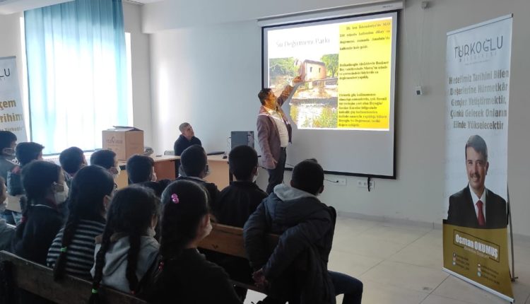 Türkoğlu Belediyesi ile Türkoğlu İlçe Milli Eğitim Müdürlüğü tarafından düzenlenen ‘Benim İlçem, Benim Tarihim’ adlı kültür ve sanat etkinlikleri kapsamında, ilçedeki tüm öğrencilere ilçede doğup büyüyen, bir çok önemli eser ve araştırmaya imza atan Tarihçi Yazar Mehmet IŞIK tarafından Kurtuluş Savaşında Türkoğlu ilçesinin önemi anlatılmaya devam ediliyor.