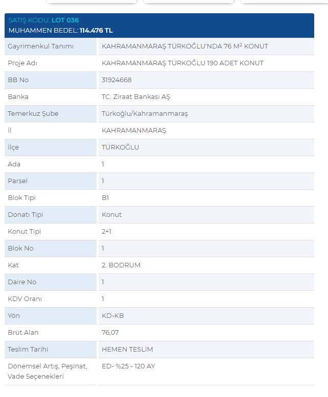 Satışa sunulacak olan ev 76 metre kare genişliğinde olup kuzeydoğu-kuzey batı cephesinde bulunuyor. Toplam bedeli ise 114.476 TL olarak açıklandı.