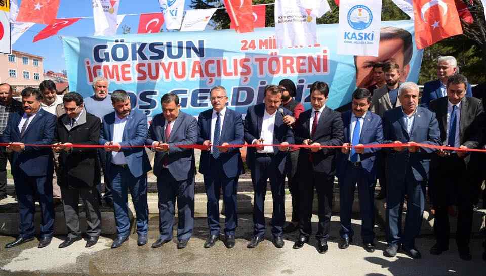 Yapımına geçtiğimiz yıl başlanılan ve 1 yıl gibi bir sürede inşaat çalışmaları tamamlanarak vatandaşların hizmetine sunulan Göksun İçme Suyu Projesinin açılışı Göksun’da düzenlenen törenle yapıldı. Törene Büyükşehir Belediye Başkanı Fatih Mehmet Erkoç, Göksun Kaymakamı Ejder Demir, Göksun Belediye Başkanı ve Cumhur İttifakı başkan adayı Hüseyin Coşkun Aydın, KASKİ Genel Müdürü Çetin Hurşitoğlu, KASKİ Genel Müdür Yardımcıları Ahmet Esin, Murat Kayıoğlu ve vatandaşlar katıldı.