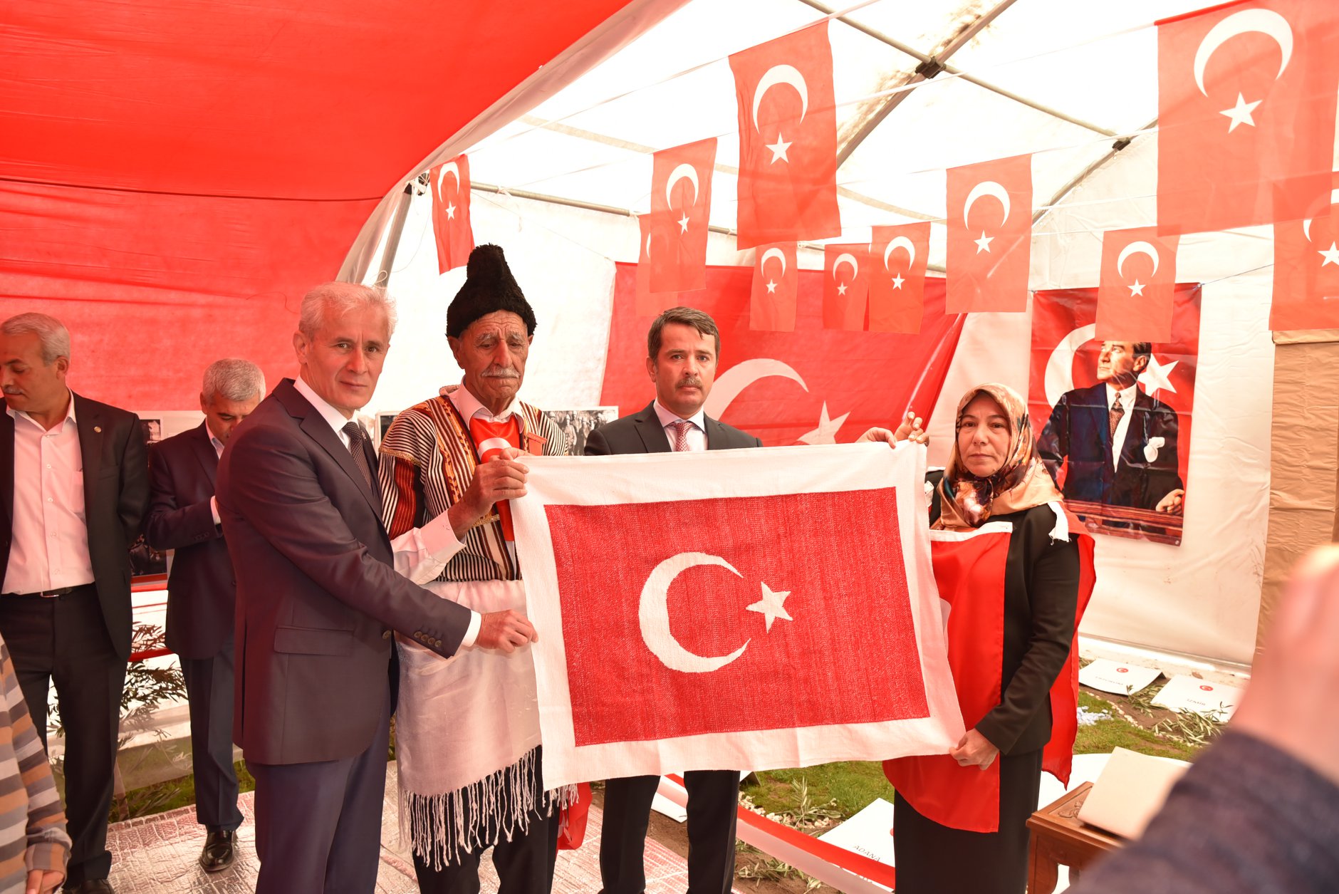 Bu program Çanakkale Zaferi anısı aslında, Çanakkale’yle beraber o günden günümüze kadar olan tüm şehitlerimiz adına muhteşem bir eser ortaya koyulmuş. Özellikle Uzunsöğüt’lü hanımefendilerimizin katkıda sağladığı el emeği göz nuru alın teri olan 253 bin şehide ait, 253 bin ilmekli Türk Bayrağını burada sergilediler.