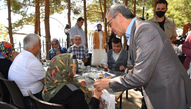 Kahramanmaraş Büyükşehir Belediye Başkanı Hayrettin Güngör, Türkiye Görme Engelliler Derneği Kahramanmaraş Şubesi ile Teras Tesislerinde gerçekleştirilen kahvaltı programına katıldı. Engelli vatandaşlara yapılan hizmetleri öncelediklerini ifade eden Başkan Güngör kahvaltı sonrası yaptığı konuşmada, “Öncelikle derneğimize ve bütün üyelerine teşekkür ediyorum. Bugün Sosyal Hizmetler Daire Başkanlığımız, arkadaşlarımız böyle bir kahvaltı programı hazırlamışlar. Daire Başkanlığımız, Şube Müdürlüğümüz kardeşlerimizin her türlü ihtiyaçlarıyla ilgileniyorlar. Bugün de bahsettiğim gibi hepimiz aslında potansiyel engelli adayıyız. Hayatımızın her aşaması aynı şekilde devam etmiyor. Bu kardeşlerimizin ihtiyaçları olan alt yapıyı hazırlamak, destek sunmak, onlara mekan oluşturmak, şehrimizin ulaşımdan tutun diğer alt yapısını görme engelli kardeşlerimize uygun hale getirmek bizim görevimiz. Bu manada da belediyemiz gerçekten çok büyük gayretle çalışıyor. Bugün de onların taleplerini dinlemek, ihtiyaçları belirlemek ve hasbihal etmek üzere bir araya geldik. Arkadaşlarımız da bu talepleri peyderpey halletmiş olacak. Ben kendilerine teşekkür ediyor, onlarla beraber olmaktan duyduğum mutluluğu ifade ediyorum” dedi.