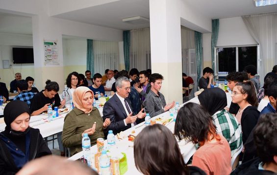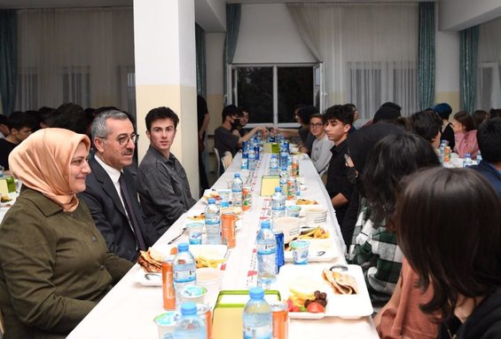 Kahramanmaraş Büyükşehir Belediye Başkanı Hayrettin Güngör, iftar sofralarında ve teravih namazlarından sonra vatandaşlarla bir araya gelmeye devam ediyor. Bu kapsamda Başkan Güngör, TOBB Fen Lisesi öğrencilerinin iftar sofrasına misafir oldu. TOBB Fen Lisesi öğrencileriyle birlikte iftar yapan Başkan Güngör, arkadaşları tarafından 12. sınıf öğrencisi Ali Şakalak’a düzenlenen sürpriz doğum günü kutlamasına katıldı. Öğrencilerle birlikte iftar yapmaktan duyduğu mutluluğu ifade eden Başkan Güngör, “Bugün TOBB Fen Lisesi öğrencilerinin iftar sofrasına misafir olduk. Başardığımız, hayal ettiğimiz ne varsa onlara emanet edeceğiz. Onları böyle birlik ve kardeşlik içinde görmek büyük mutluluk” dedi.