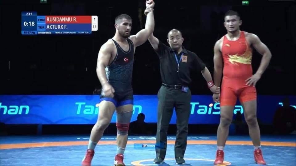 Kahramanmaraş Büyükşehir Belediyesi Güreş Takımında sporcuları Feyzullah Aktürk ve Ömer Faruk Çayır, Milli Takım ile Estonya’da gerçekleşen Dünya Şampiyonası’na katıldı. Estonya’nın başkenti Tallinn’de düzenlenen Dünya Gençler Güreş Şampiyonasında Serbest Stilde Avrupa Şampiyonu güreşçimiz Feyzullah Aktürk ABD’li, Ukraynalı rakiplerinden sonra Çinli rakibi Reheman Rusıdanmu’yu da (11-1) sayı tuşuyla yenerek Dünya 3.sü oldu ve bronz madalya kazandı. Şampiyonaya 70 kiloda katılan Büyükşehir Belediye Güreşçisi Ömer Faruk Çayır ise dünya beşincisi oldu.