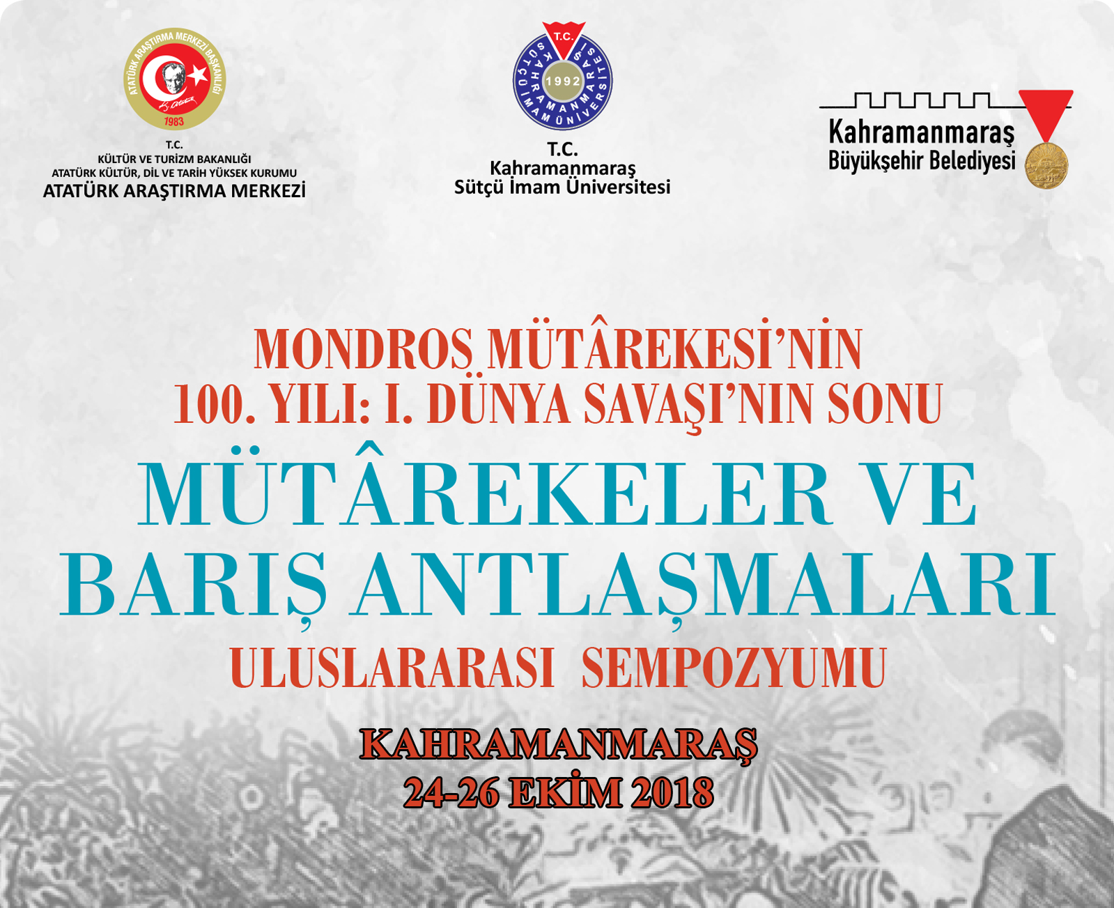 Atatürk Araştırma Merkezi, Kahramanmaraş Sütçü İmam Üniversitesi ve Kahramanmaraş Büyükşehir Belediyesi işbirliği ile 24-26 Ekim 2018 tarihleri arasında gerçekleştirilecek olan sempozyumda “Mondros Mütarekesi’nin 100. Yılı, 1. Dünya Savaşı’nın Sonu Mütarekeler ve Barış Antlaşmaları” konusu masaya yatırılacak.