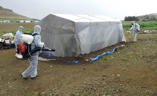 Kahramanmaraş Büyükşehir Belediyesi konar göçer ailelerin barındığı ovalarda da uçkunla mücadele kapsamında ilaçlama çalışmalarına devam ediyor.