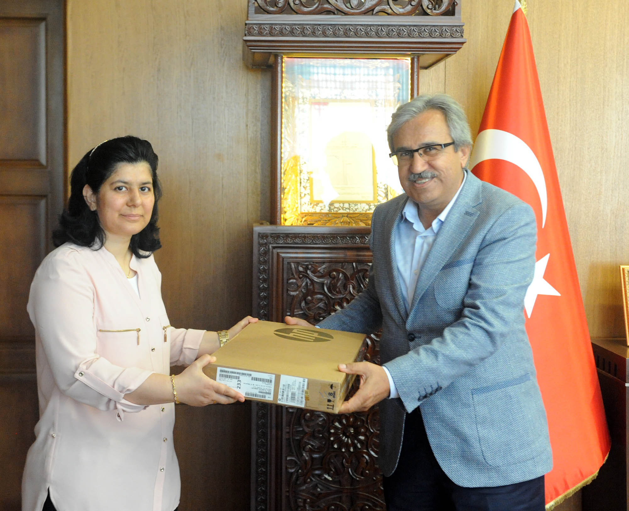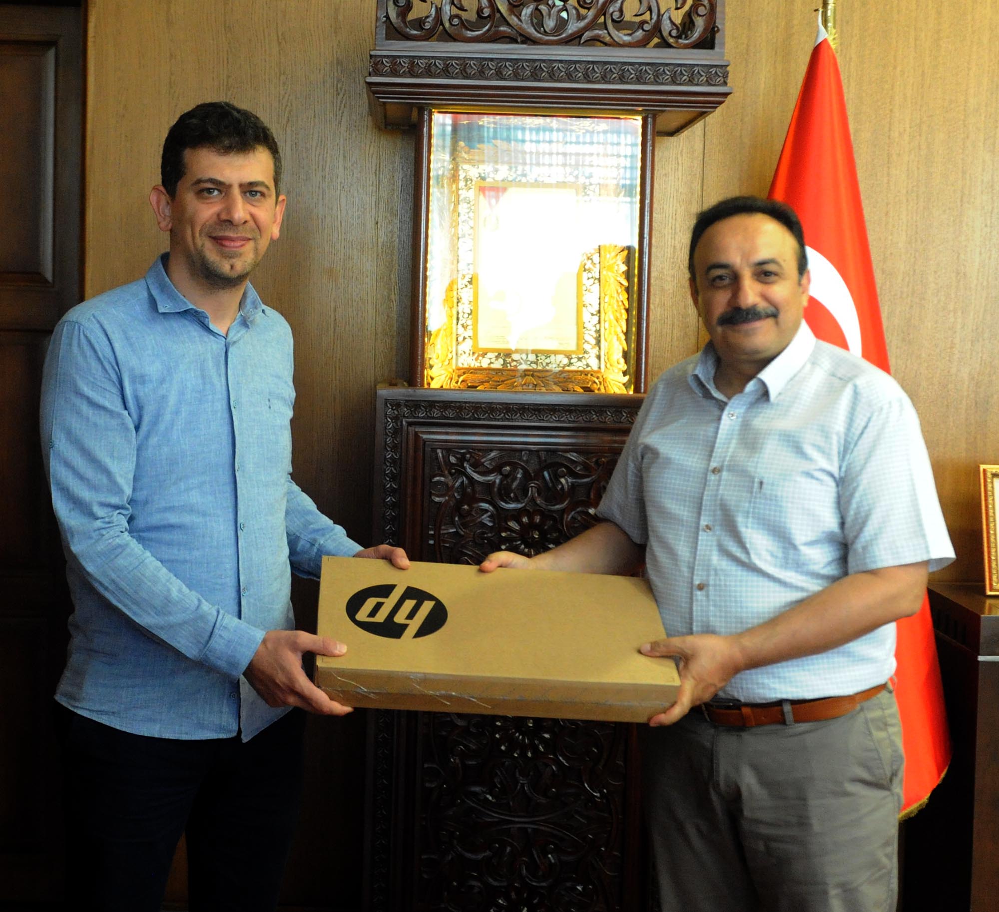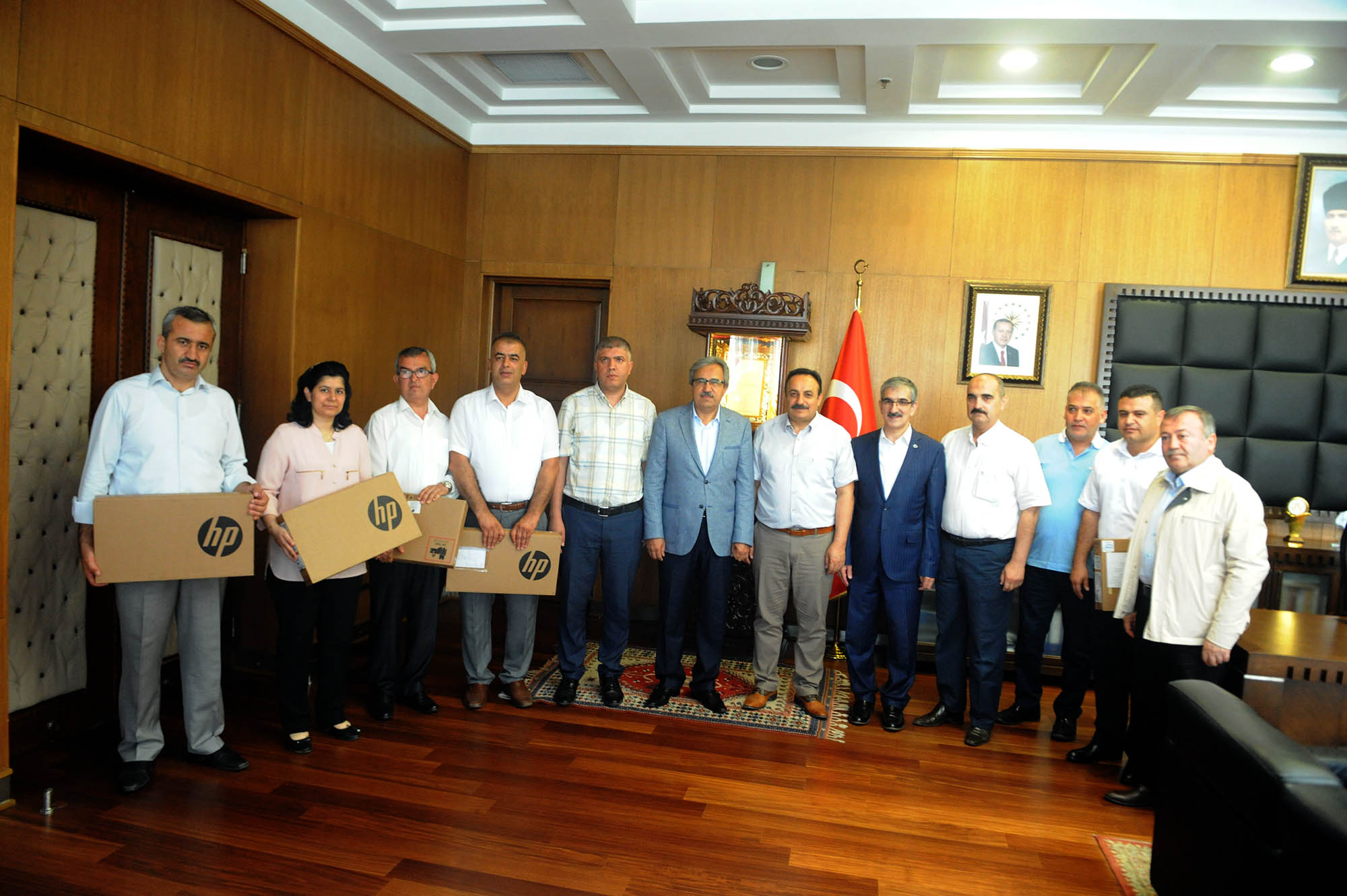 Kahramanmaraş Büyükşehir Belediyesi başkanlık makamında gerçekleştirilen bilgisayar takdim törenine Kahramanmaraş Büyükşehir Belediyesi Başkanvekili Fatih Kiraz, Genel Sekreter Züver Çetinkaya, Kültür ve Sosyal İşler Dairesi Başkanı Cevdet Kabakcı, Kültür ve Turizm Şube Müdürü Mustafa Semerci ile İl Milli Eğitim Müdürü Mehmet Emin Akkurt, Onikişubat İlçe Milli Eğitim Müdürü Enver Gökşen, Dulkadiroğlu İlçe Milli Eğitim Müdürü Harun Kurt ile şube müdürleri ve dereceye giren okulların müdürleri katıldı.
