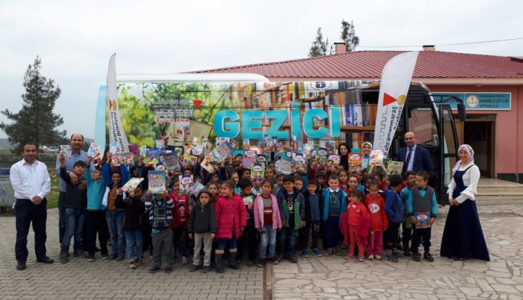 Gittiği okullarda öğrencileri kitapla buluşturan Gezici Halk Kütüphanesi’nde öğrencilere kitap okuma, masal saati, kitap ve kütüphane tanıtımı gibi etkinliklerle hizmet veriliyor.