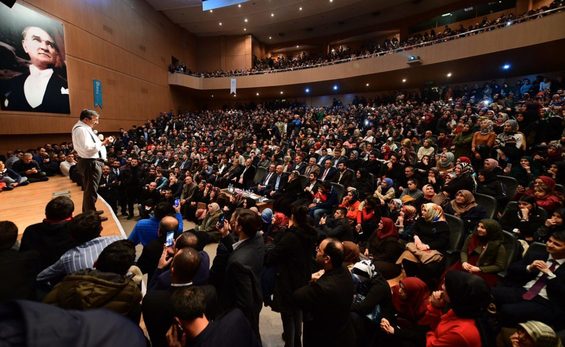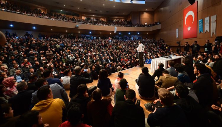Yoğun ilgi nedeni ile konferans salonuna sığmayan vatandaşlar, dışarıya kurulan ses sistemleri ile Hayati İnanç’ın “Can Veren Pervaneler” konferansını dinledi.
