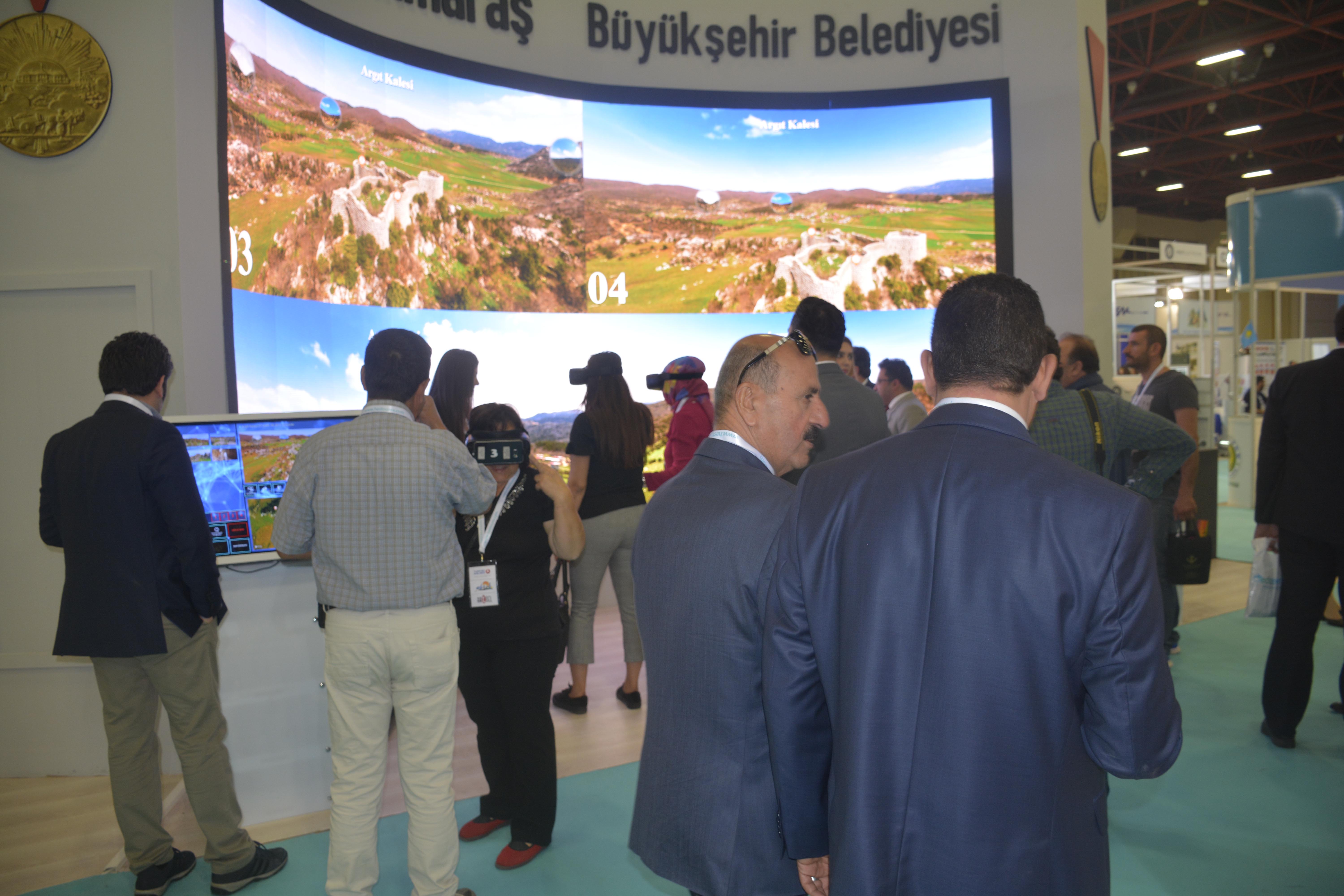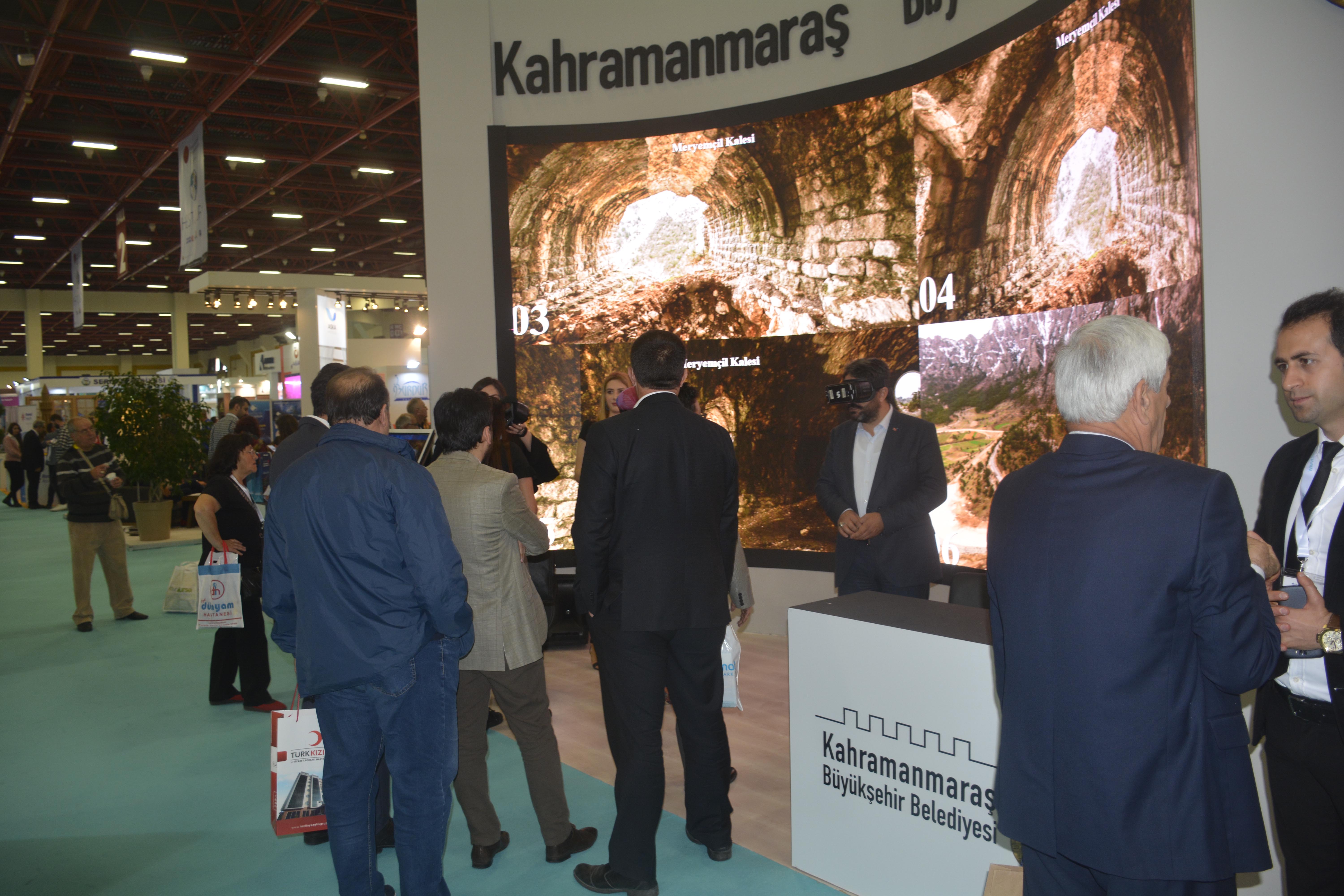 Kahramanmaraş’ın tanıtımına yönelik Büyükşehir Belediyesi tarafından açılan standta; Aliya İzzet Begovic Parkı, 15 Temmuz Millet Bahçesi, Menzelet Mesire Alanı, Yeşilgöz Mesire Alan, Suk-i Maraş Çarşısı, Bakırcılar Çarşısı, Semerciler Çarşısı, Taşhan, Mazman Çarşısı, Demirciler Çarşısı, Taşmescit, Ulucami, Karamanlı Kavşağı, Abdulhamidhan Kavsağı, Azgıt Kalesi,Meryemçil Kalesi, Ak Kalesi, Başkonuş Yaylası, Yavşan Yaylası, Yedigüzel Adam Edebiyat Müzesi, Yedikuyular Kayak Merkezi, Kurtuluş Destanı Panorama Müzesi, Taşköprü, Germenicia Antik Kenti,Malik Bin Ejder Türbesi gibi Kahramanmaraş’ın tarihi ve turistik mekanları sanal gerçeklikle hazırlanmış görüntüleri, sanal gerçeklik gözlükleri ile ziyaretçilere sunuldu.