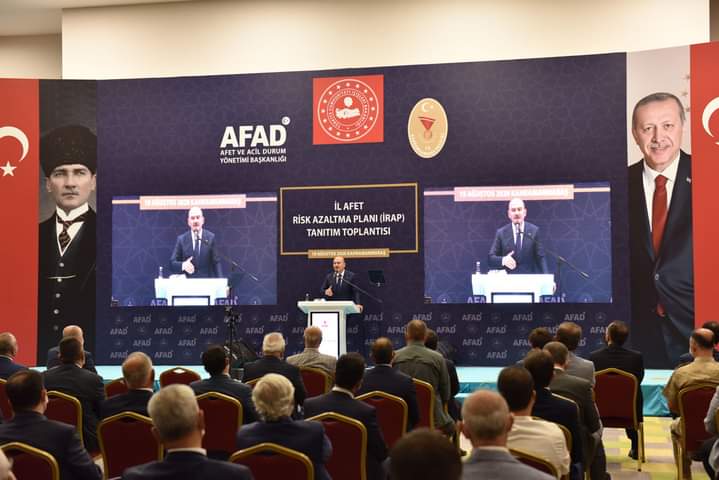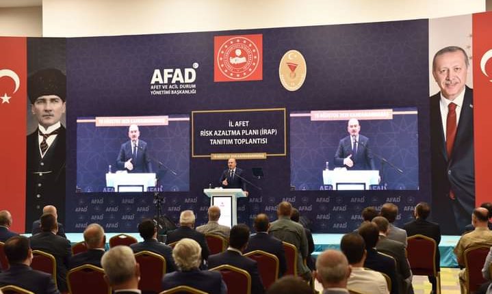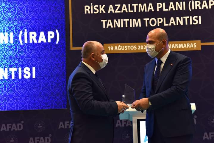 Bakanımız Sayın Süleyman Soylu ise burada yaptığı konuşmada, “Yaklaşık 2019 yılı Mayıs ayından itibaren burada hummalı bir çalışma içindeyiz. Bu çalışma bizim için örnek ve pilot bir çalışmadır. Kahramanmaraş’ın oluşturduğu risk planını, Türkiye afet planı ile tüm Türkiye’ye teşvik edeceksek, 81 vilayetimizde toplantılarımızı yapıp risk çalışmalarını tamamlayalım. Kahramanmaraş’a en kısa sürede arama kurtarma birimimizi kuracağız.” dedi.