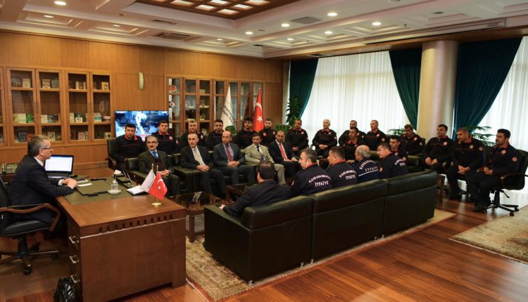 Başkanlık makamında deprem sonrası bölgeye giden itfaiyecilere mektubu bizzat kendisi takdim eden Büyükşehir Belediye Başkanı Hayrettin Güngör, arama-kurtarma faaliyetlerine katılan itfaiye personellerine bir kez daha teşekkür etti.