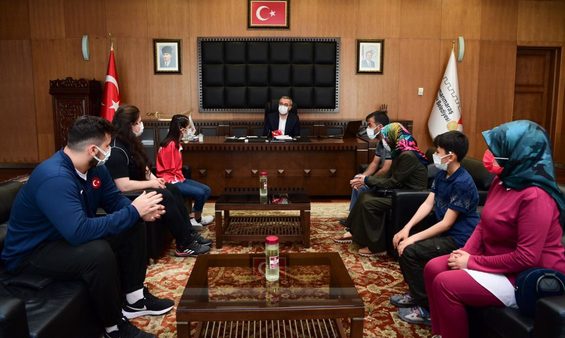 Kahramanmaraş Büyükşehir Belediye Başkanı Hayrettin Güngör, İtalya, Rusya ve Bulgaristan’daki turnuvalarda dereceler kazanan sporcuları makamında ağırladı. Gerçekleşen ziyarete, Paralimpik Yüzme Dünya Serisi’nde bir üçüncülük, üç ikincilik ve bir birincilik olmak üzere 5 madalya kazanan Sevilay Öztürk, Büyükler Halter Avrupa Şampiyonası’nda üçüncü olan Melike Günal ve Nikola Petrov ve Dankolov Turnuvası’nda Avrupa üçüncüsü olan Anıl Kılıçsallayan katıldı. Büyükşehir Belediye Başkanı Hayrettin Güngör, Büyükşehir Gençlik ve Spor Kulübü sporcularını başarılarından dolayı tebrik etti.