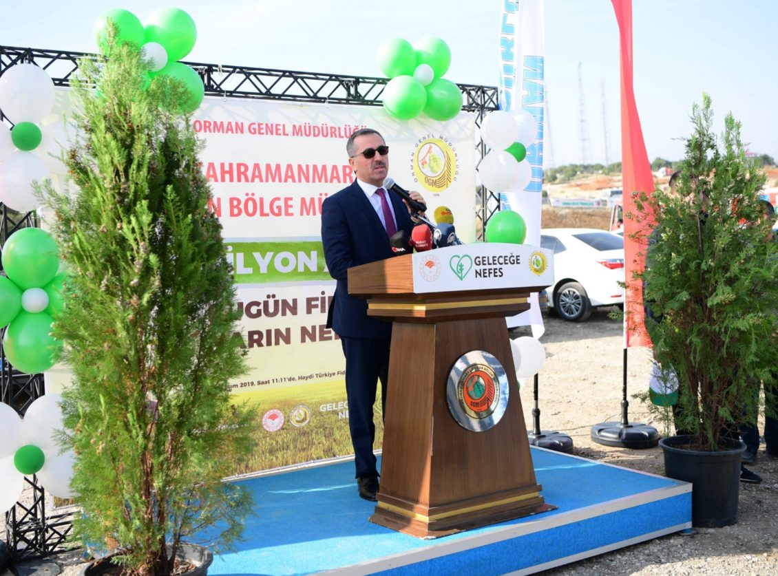Törende bir konuşma yapan Orman Bölge Müdürü Mustafa Koç, fidan dikiminde dünya rekoruna koştuklarını ifade ederek: “Bugün saat 11.11’de, 81 şehrimizde, 2023 noktada 11 milyon fidanı toprakla buluşturuyoruz. Daha yeşil bir Türkiye için ‘bugün fidan yarın nefes’ sloganıyla dünya rekoruna koşuyoruz. Kahramanmaraş’ımızda ise bugün 221 bin fidanı toprakla buluşturacağız” diye konuştu.