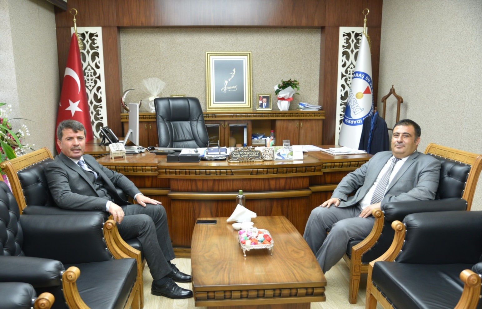 Geçtiğimiz günlerde KASKİ Genel Müdürlüğü görevine atanan Çetin Hurşitoğlu’na ziyaretler devam ederken bir ziyaret de Türkoğlu ilçemizden gerçekleşti. Türkoğlu Belediye Başkanı Osman Okumuş, Çetin Hurşitoğlu’nu makamında ziyaret ederek yeni görevinden başarılar ve kolaylıklar diledi.
