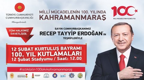 Kahramanmaraş’ın düşman işgalinden kurtuluşunun 100. yılı, Sayın Cumhurbaşkanımız Recep Tayyip Erdoğan’ın teşrifleriyle kutlanacak.