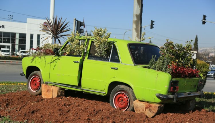 Kahramanmaraş Büyükşehir Belediyesi’nin Yeni Sanayi Sitesi kavşağına yerleştirdiği hurda oto çiçeklik görenlerin beğenisini kazandı.