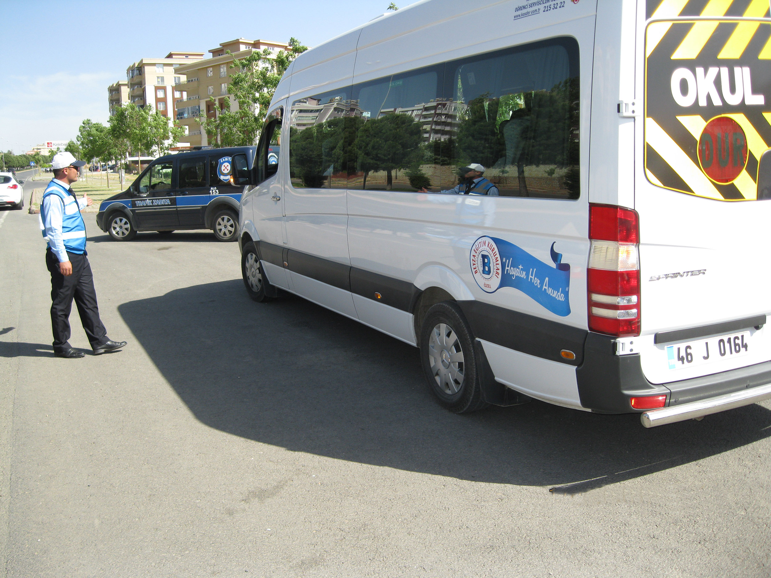 Kahramanmaraş Büyükşehir Belediyesi Zabıta Dairesi Başkanlığı Trafik Zabıta Şube Müdürlüğü tarafından, okul servis aracı işletenleri kanun ve yönetmelikte belirtilen kurallara uygunluğu yönüyle denetleniyor.