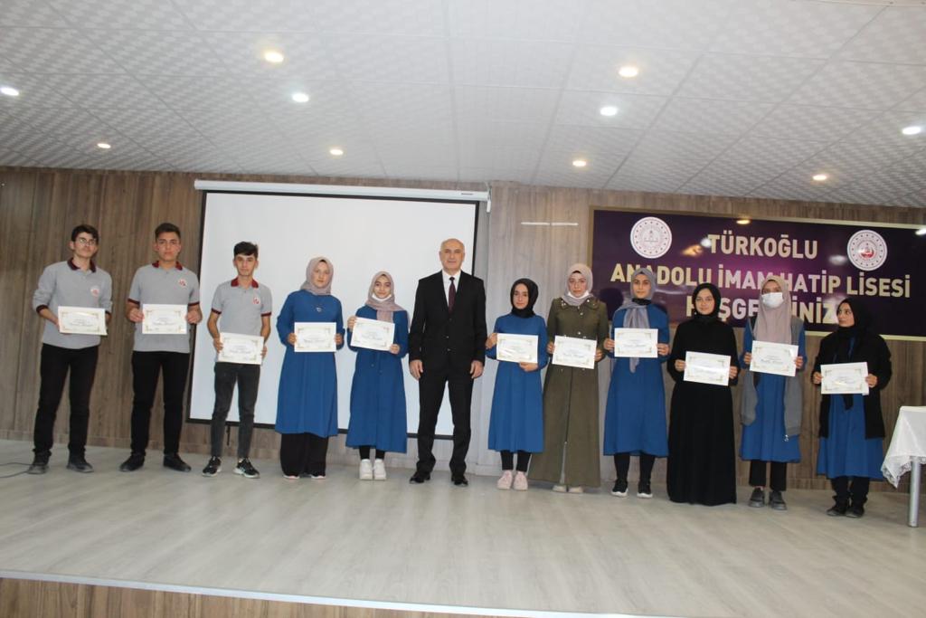 Türkoğlu İlçe Milli Eğitim Müdürlüğü proje ile ilgili olarak; “Yarışmaya katılan 10 öğrencimize katılım belgeleri İlçe Milli Eğitim Müdürümüz Adem AYDOĞAN tarafından verildi. “Gençler Kürsüde” Projemiz ile 10 lisemizde yarışma yapılacak. 10 öğrencimiz kendi sunumlarını yapacak, jüri tarafından okul birincileri belirlenecektir.