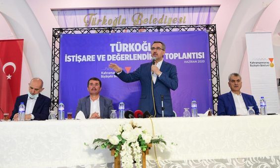 İstişare ve Değerlendirme Toplantısı için muhtarlarla bir araya gelen Kahramanmaraş Büyükşehir Belediye Başkanı Hayrettin Güngör, Türkoğlu ilçesinin Kahramanmaraş’tan ayrı düşünülemeyeceğini ifade ederek: “Türkoğlu ilçemiz de Onikişubat ve Dulkadiroğlu ilçelerimiz gibi metropol ilçe ve merkez ilçe olma yolunda hızla ilerliyor. Türkoğlu İlçemizde yol ve su sorunu kapsamında merkezde fazla bir sorun olmadığını gördük. Kırsal mahallelerimizde yol kapsamında sorunlar olduğunu tespit etti. Bu önümüzdeki süreçte Türkoğlu ilçemizin mahallelerinde 10 km sıcak asfalt 7 km de sathi kaplama yapılacak. Bunun yanı sıra yüzme havuzu ve spor salonu ihtiyacı da giderilecek” dedi.