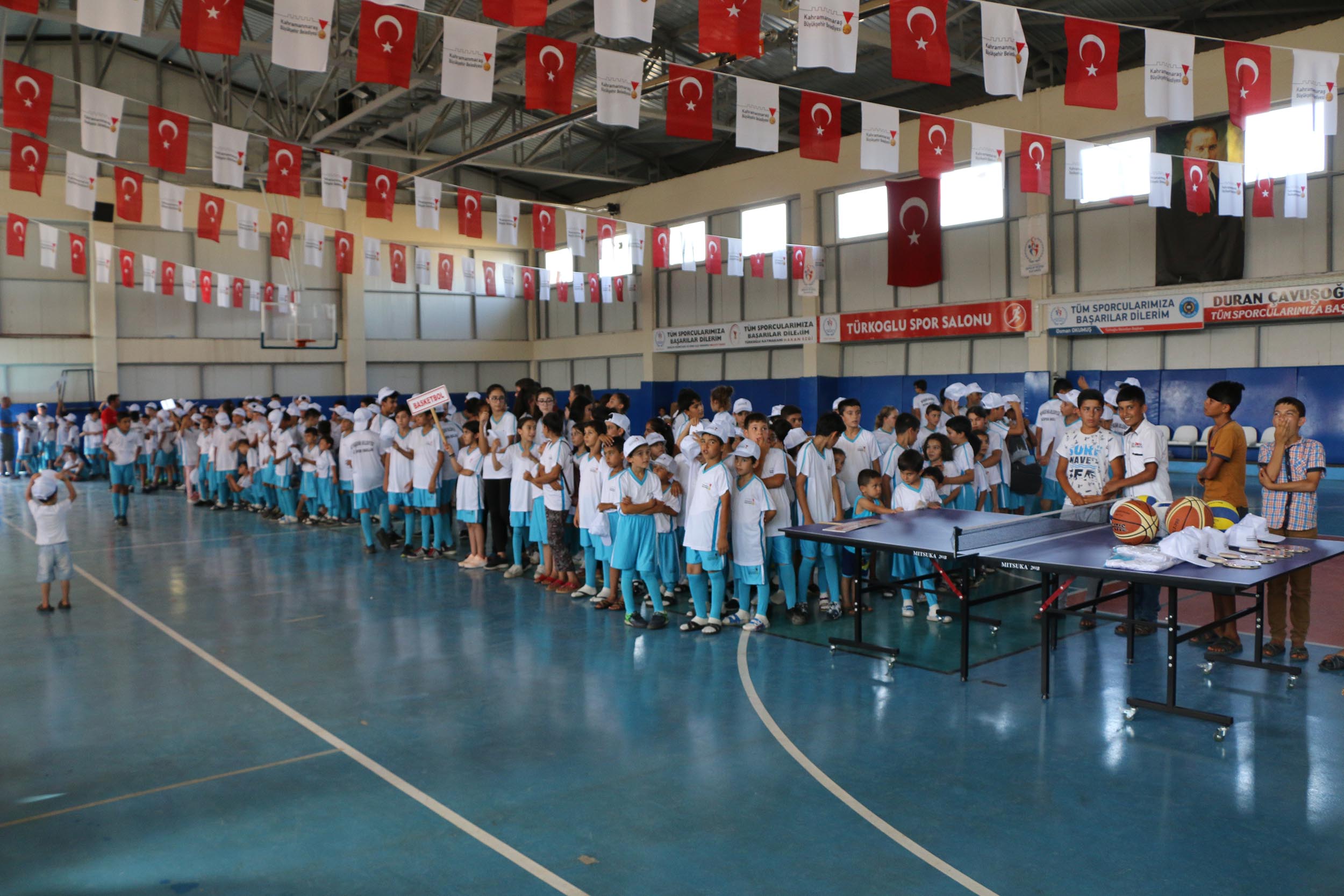 Türkoğlu Spor Salonu’nda gerçekleştirilen açılışa, Kahramanmaraş Büyükşehir Belediyesi Kültür ve Sosyal işler Dairesi Başkanı Cevdet Kabakcı, Türkoğlu Belediye Başkanvekili Ramazan Bozdoğan, Büyükşehir Belediyesi Gençlik ve Spor Şube Müdürü Halil Bozdoğan ile diğer protokol mensupları, öğrenciler ve velileri katıldı.