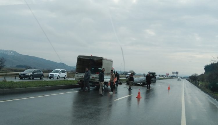 Türkoğlu Kahramanmaraş yolunda yağış nedeniyle bir araç takla atarak kaza yaptı.