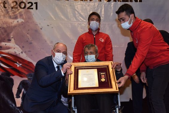 Burada bir konuşma yapan Vali Ömer Faruk Coşkun, “Değerli şehit ailelerimiz ve gazilerimiz; sizlere Sayın Cumhurbaşkanımızın selamlarını ileterek bilmenizi isterim ki; ne yaparsak yapalım şehitlerimizin ve gazilerimizin yapmış olduğu fedakârlığı hiçbir şeyle ödeyemeyiz. Bu madalyalar sadece millete yapılmış olan fedakârlığın, gösterilen kahramanlığın bir nişanesidir. Çocuklarınız, torunlarınız, seneler boyu, asırlar boyu bu madalyaları bir şeref nişanesi olarak gelecek nesillere aktaracak, sizlere hayır duaları edeceklerdir, inşallah.