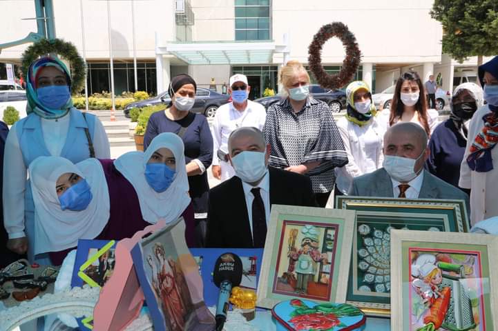 Türkoğlulu siyam ikizleri Ayşe ve Sema Tanrıkulu kardeşler, hayat boyu öğrenme haftası etkinlikleri kapsamında yaptıkları el emeği göz nuru ürünleri sergilediler.