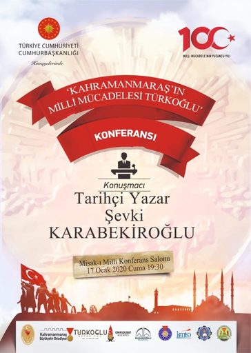 Cumhurbaşkanlığı himayelerinde Kahramanmaraş Büyükşehir Belediyesi tarafından organize edilen Kahramanmaraş’ın İstiklal Mücadelesinin 100.Yılı konferansı Türkoğlu halkıyla buluşuyor.