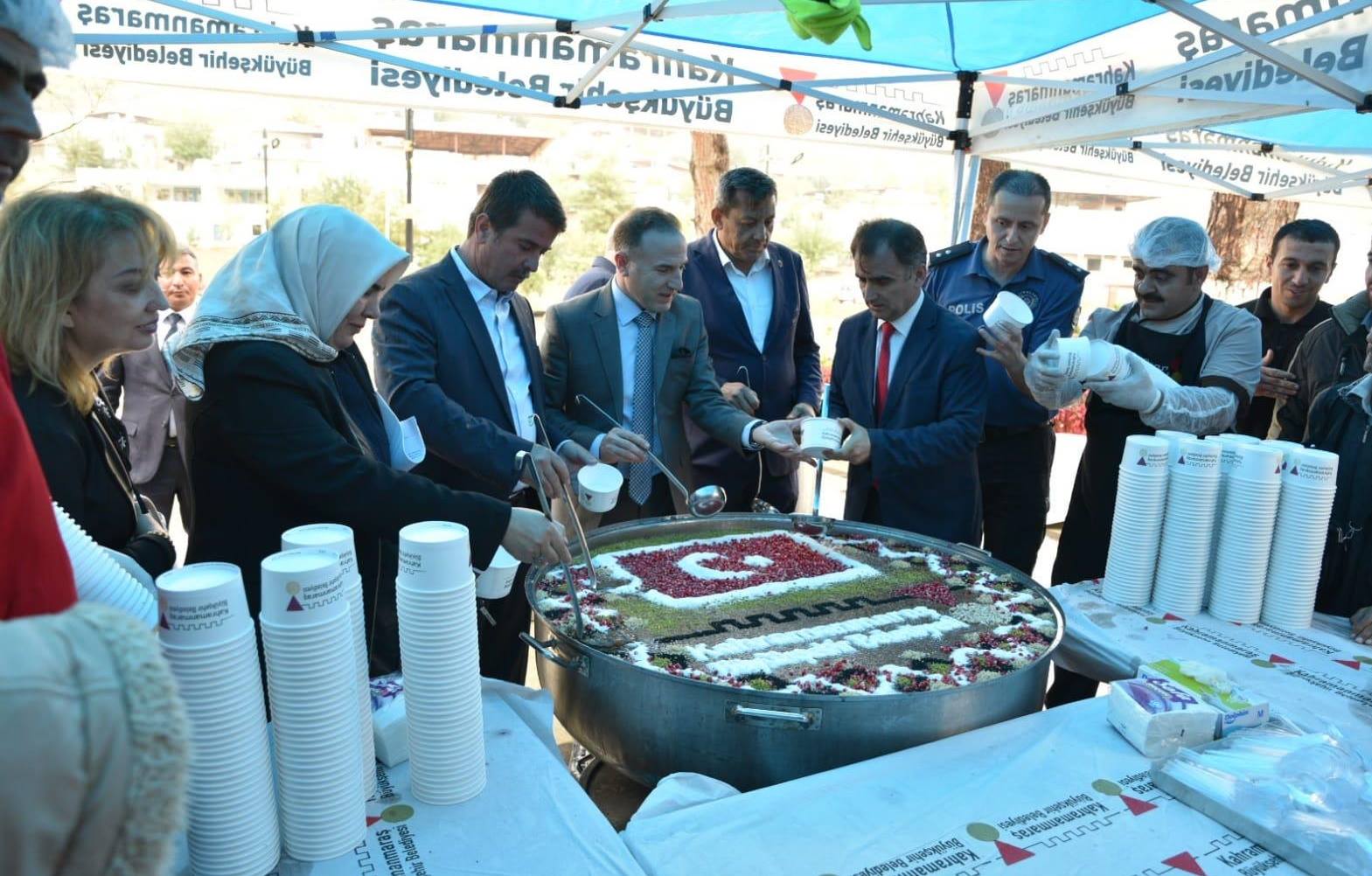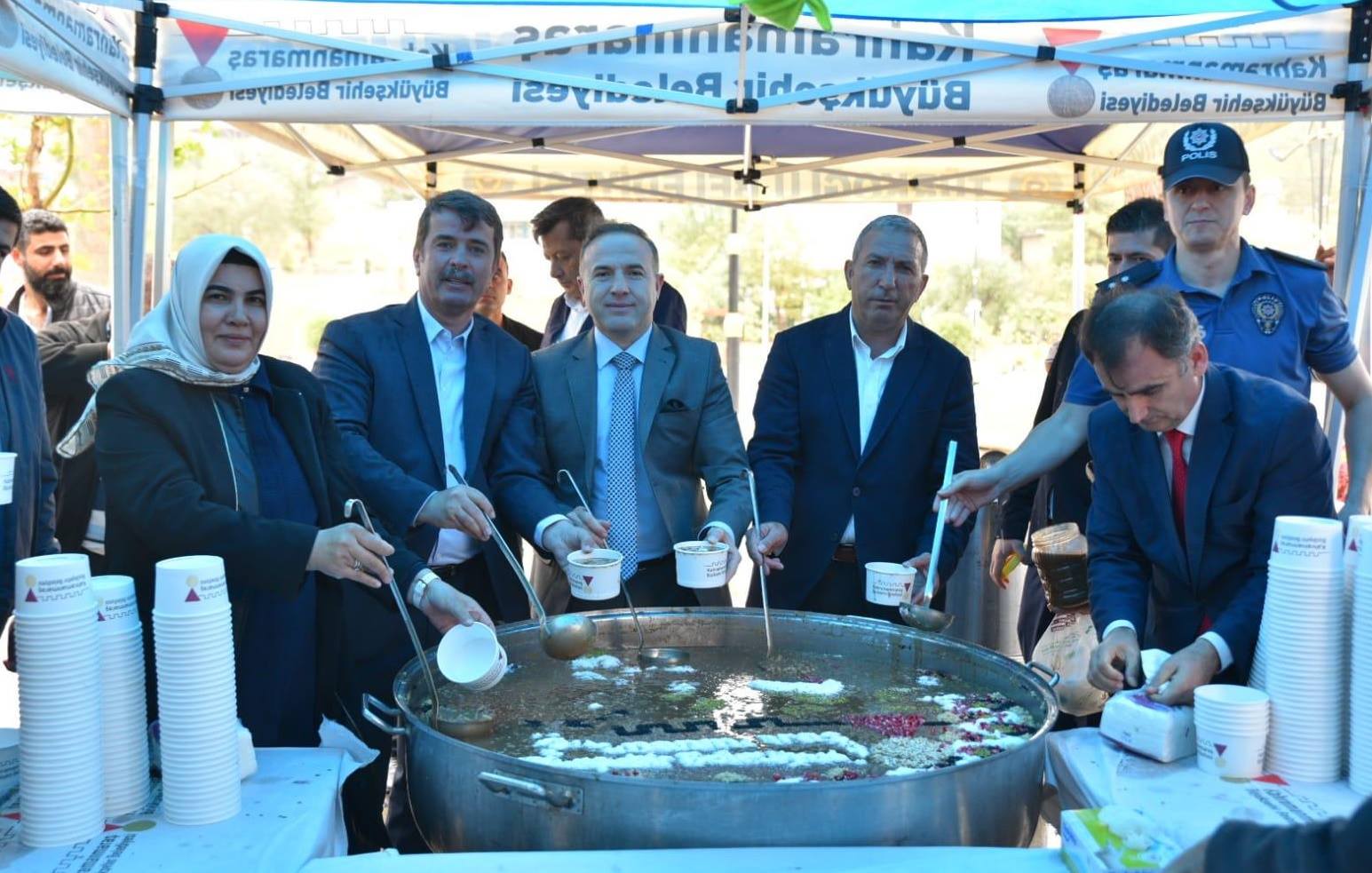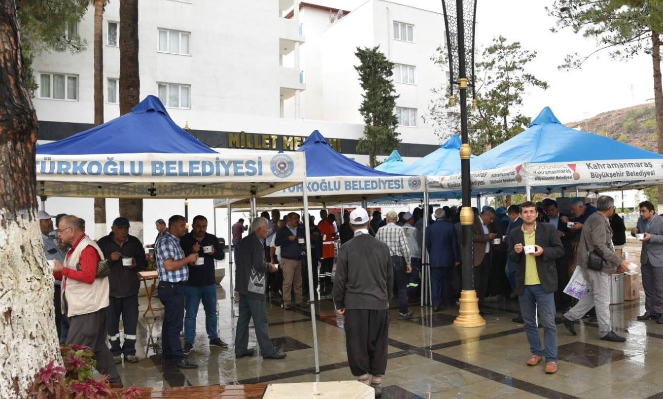 Kahramanmaraş Büyükşehir ve Türkoğlu Belediyesi iş birliğinde Türkoğlu ilçesinde vatandaşlara aşure ikramı yapıldı.