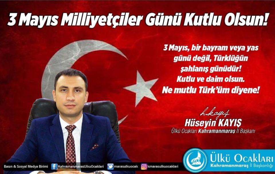 Kahramanmaraş Ülkü Ocakları Başkanı Hüseyin KAYIŞ, 3 Mayıs Türkçülük ve Milliyetçilik günü nedeniyle bir mesaj yayınladı.