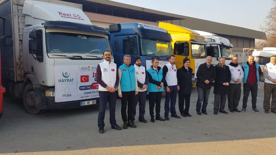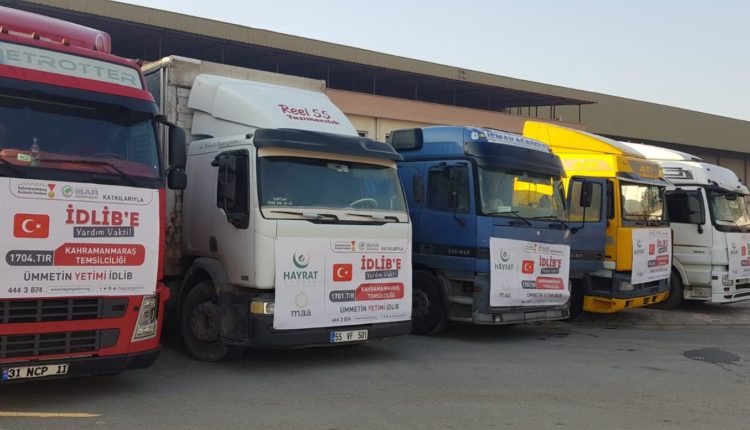 Kahramanmaraş Büyükşehir Belediyesi, Hayrat İnsani Yardım Derneği ve Kahramanmaraş İSAR Derneği işbirliğiyle başlatılan Ümmetin Yetimi İdlip Yardım Kampanyası kapsamında hazırlanan 3 tır gıda, 2 tır un, 1 tır soba ile 1 tır battaniye ve giyimden oluşan 7 adet insanî yardım tırı KAFUM Fuar alanından dualarla uğurlandı.