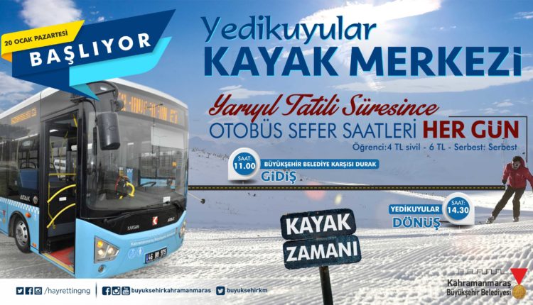 Büyükşehir Belediyesi’nden konu ile alakalı yapılan açıklamada: “Yedikuyular Kayak Merkezi’ne hafta sonu Cumartesi ve Pazar günleri olmak üzere haftada iki gün düzenlenen otobüs seferine ek olarak yarıyıl tatili boyunca hafta içi her gün otobüs seferi düzenlenecektir.