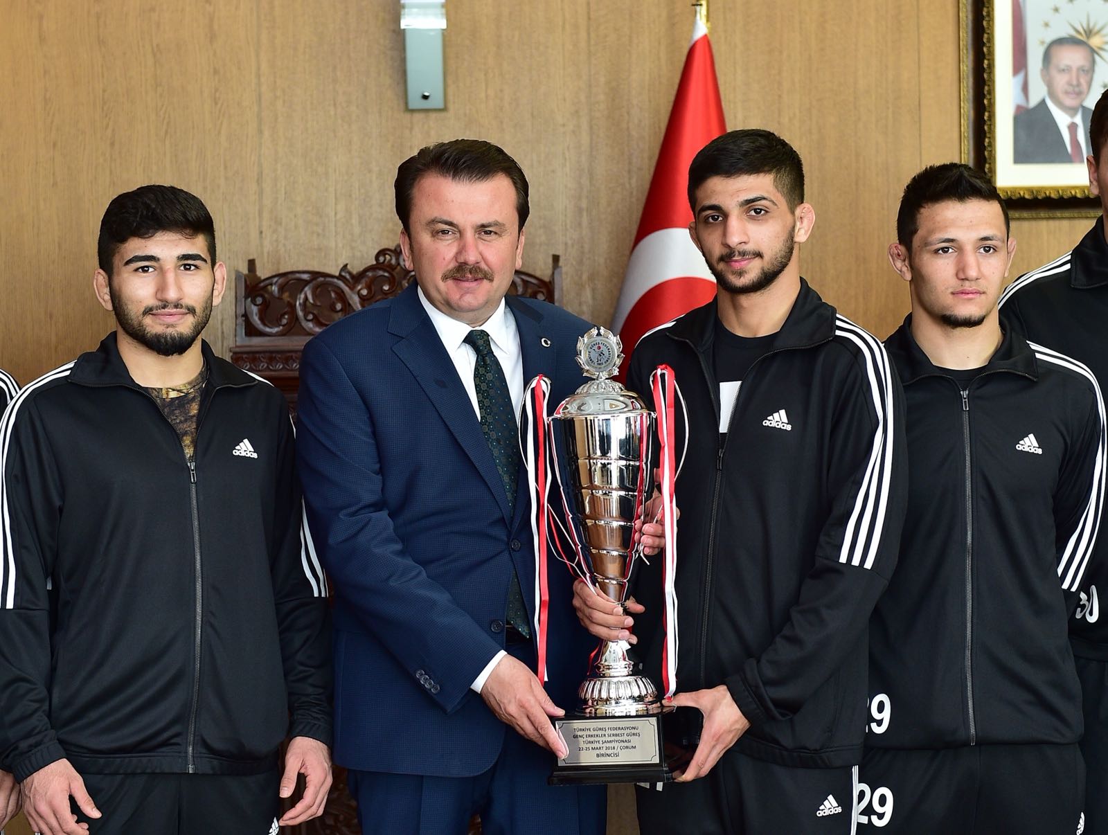 BAŞKAN ERKOÇ, ŞAMPİYONLARI KABUL ETTİ