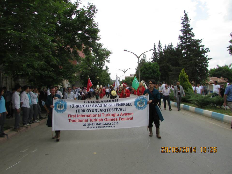 İlçemizde ilk defa düzenlenen “1. Uluslar arası Türkoğlu Avasım Geleneksel Türk Oyunları Festivali” coşkulu başladı. İlçemiz Gaziosmanpaşa Mahallesi İstiklal Caddesi’nden 23 Nisan Parkına kadar devam eden mehteranlı, atlı oklu kortej yürüyüşü ile başlayan festival ilçede adeta bayram havası estirdi.