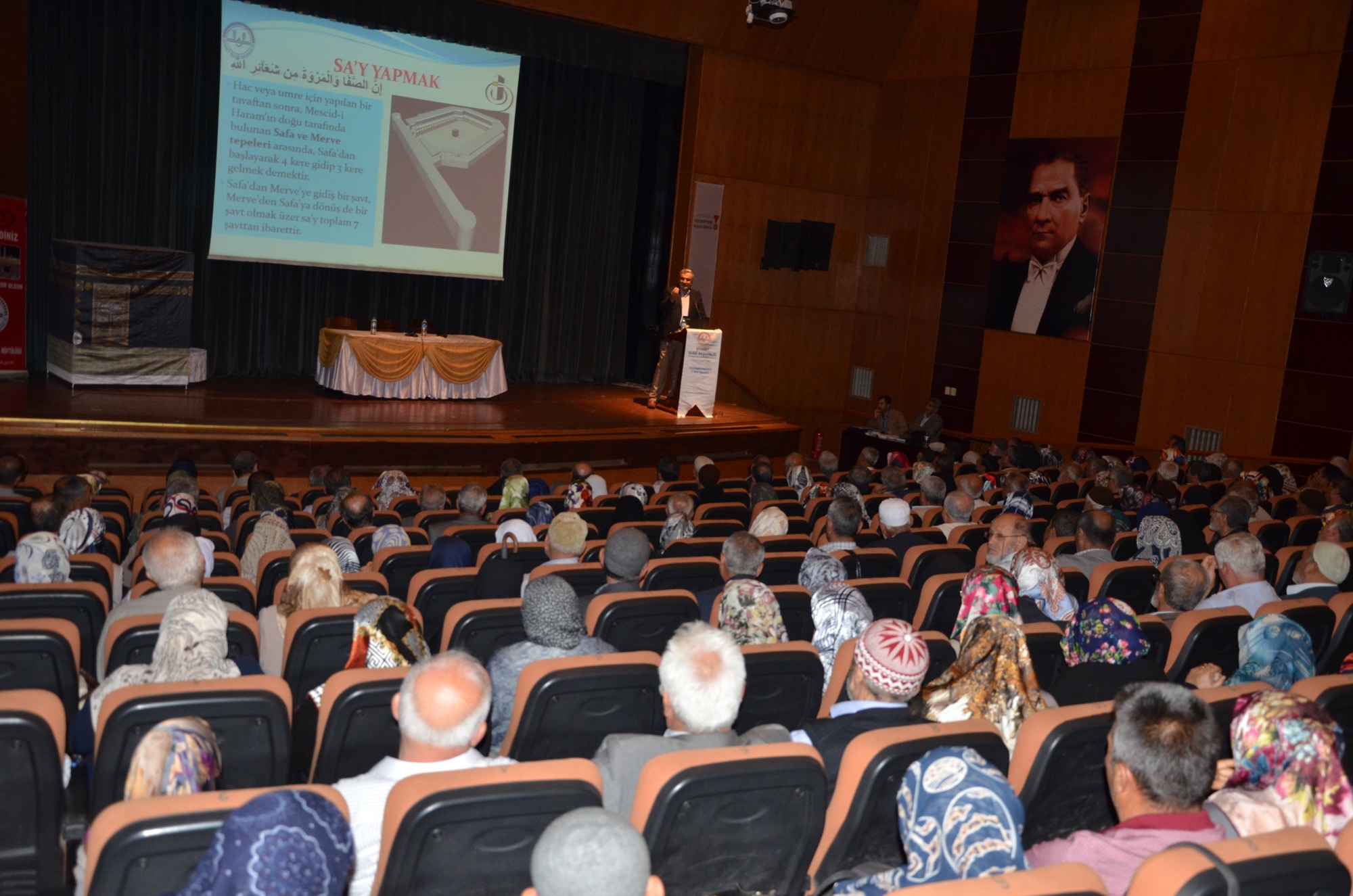 Müftü SÜRGEÇ, Hacı adaylarına ‘bu seminerin hayırlara vesile olmasını’ dileyerek Hacdan ne ile gelmeleri gerektiğine dair bilgilerle konuşmasını şöyle tamamladı: