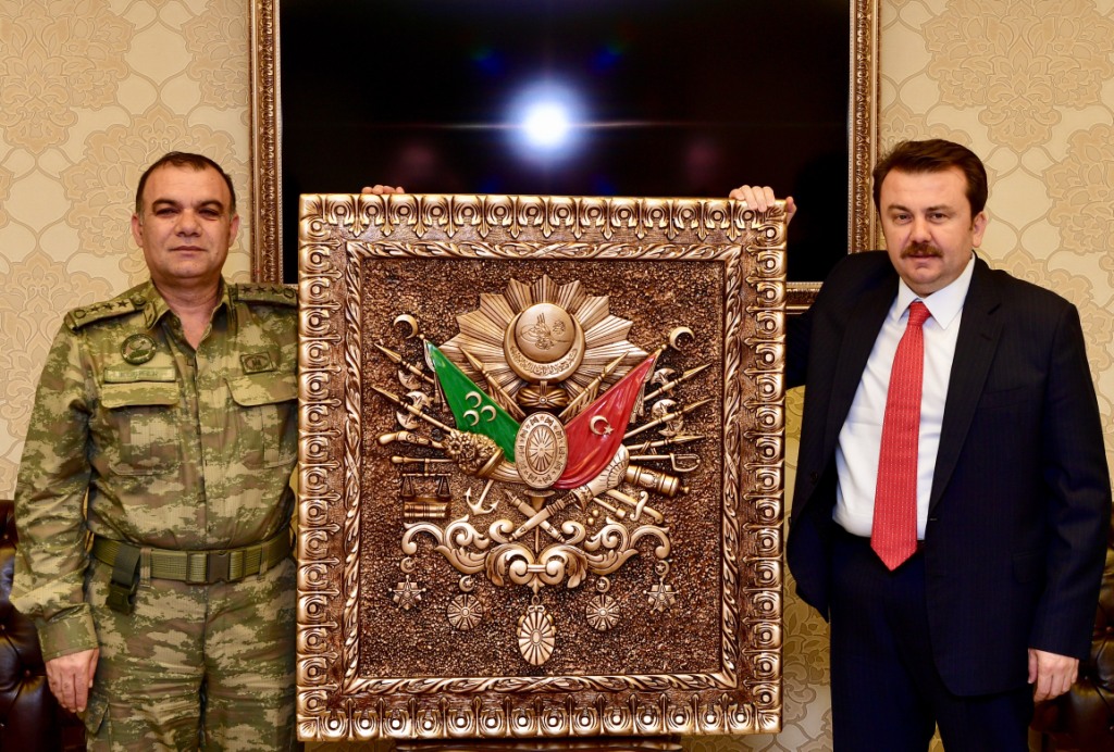 Kahramanmaraş 2. Zırhlı Tugay Komutan Yardımcısı Alb. Adnan Köşker, Büyükşehir Belediye Başkanı Fatih Mehmet Erkoç’a Osmanlı Devlet Arması hediye etti.