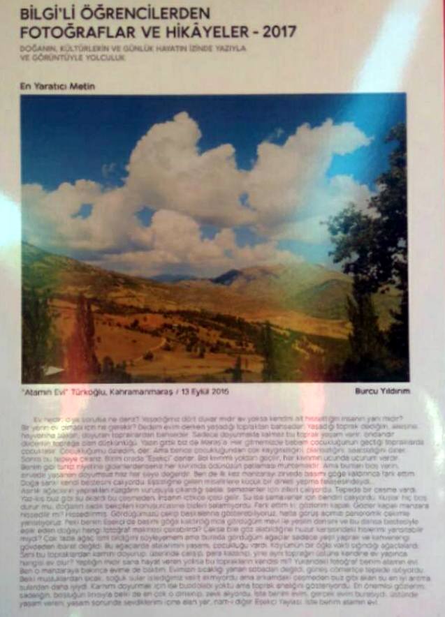 İstanbul Bilgi Üniversitesi tarafından düzenlenen Fotoğraflar ve Hikâyeler Etkinliğinde Türkoğlu ilçesi Eşekçi yaylasının anlatıldığı Atamın Evi isimli hikaye En Yaratıcı hikaye ödülüne layık görüldü.