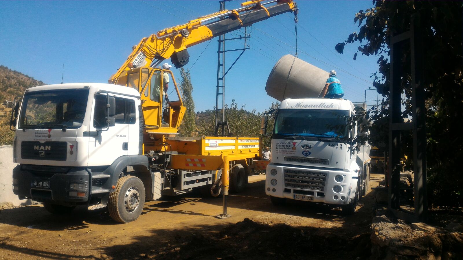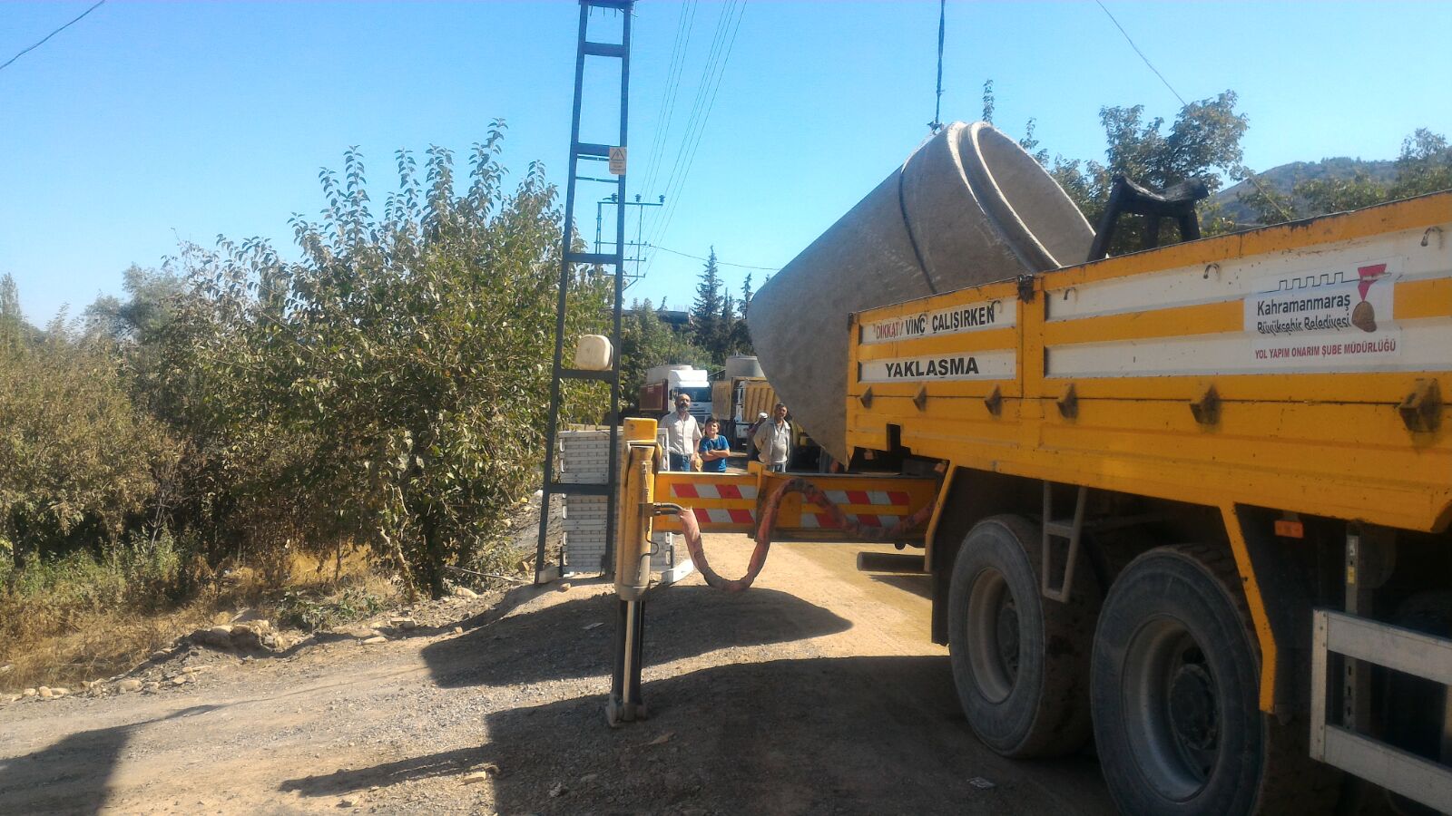 Türkoğlu İlçesi Kırmakaya Grup Yolu’nda yol genişletme çalışmalarının ardından büz atım çalışmaları tüm hızıyla devam ediyor.