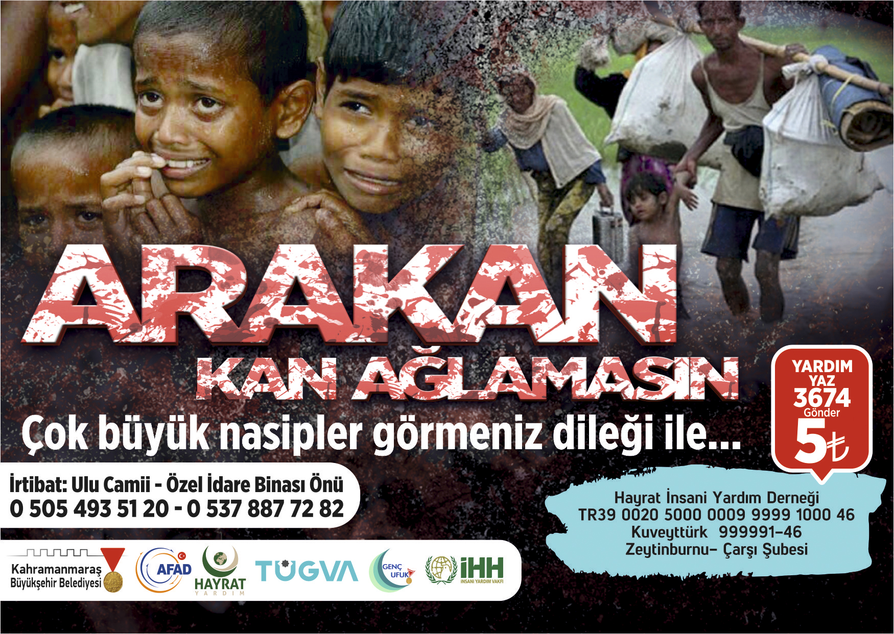 Kahramanmaraş Büyükşehir Belediyesi öncülüğünde Kahramanmaraş İl AFAD Müdürlüğü, Hayrat Yardım, Tügva, Genç Ufuk ve İHH gibi kuruluşların işbirliği ile Arakan’daki mazlumlar için yardım kampanyası başlatıldı.