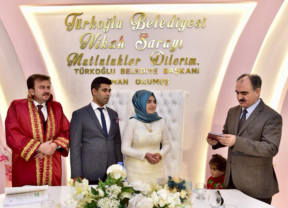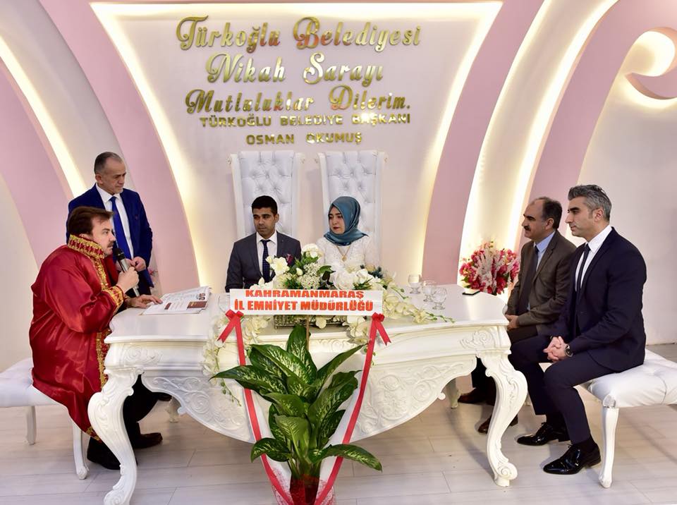 Türkoğlu Belediyesi Nikah Sarayında Çiftin nikahlarını Kahramanmaraş Büyükşehir Belediye Başkanı Fatih Mehmet Erkoç kıyarken, çiftin nikah şahitliklerini Kahramanmaraş Valisi Vahdettin Özkan ve Türkoğlu Kaymakamı Hakan Ezgi yaptı.