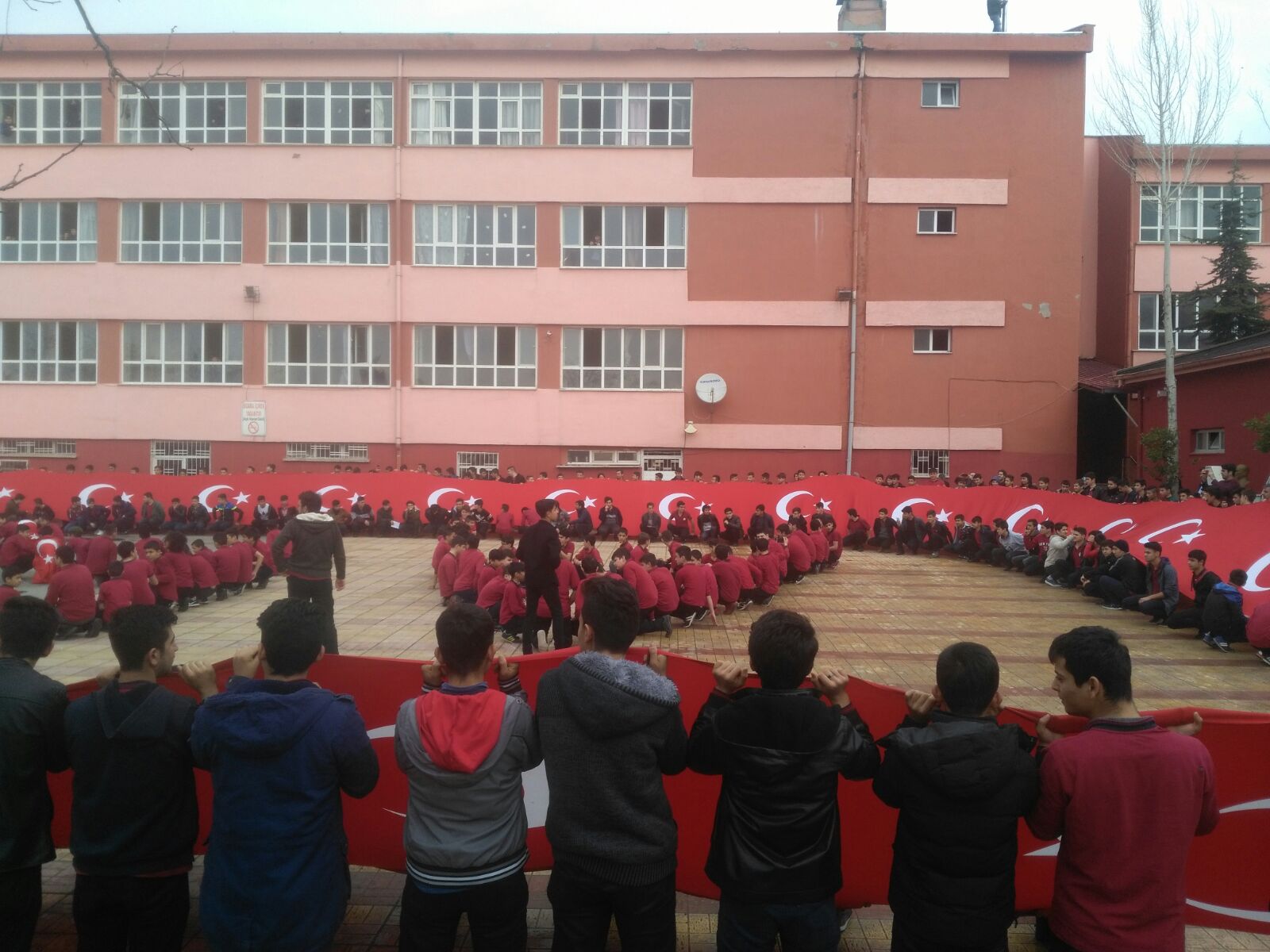 Okul Bahçesinde yapılan etkinlikte iki amaç hedeflenmiştir. Öğrencilere milli bilinç eğitimi verilmesi ve diğer taraftan Mehmetçiğimize moral desteği sağlanması amaçlanmıştır.
