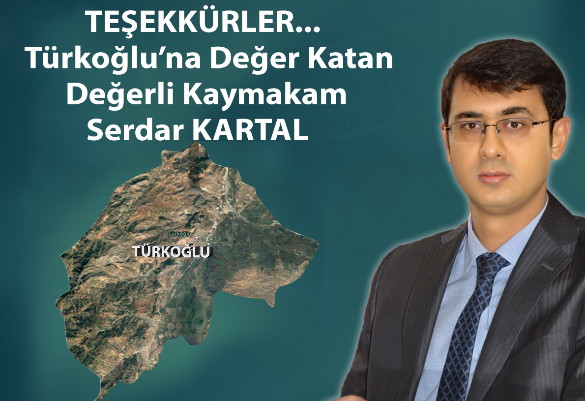 Görev yaptığı süre içerisinde Türkoğlu ilçemize değer katmaya yönelik başarılı çalışmalar yürüten Serdar KARTAL’a ilçemize yaptığı hizmetler için teşekkür eder, yeni görevinde başarılar dileriz.
