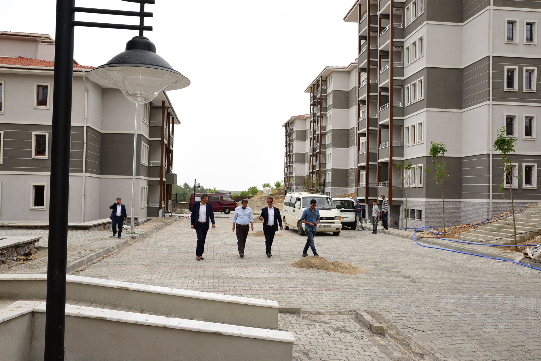 Türkoğlu Belediye Başkanı Osman Okumuş, yapımı tamamlanan ve çevre düzenlemesi devam eden TOKİ konutlarında incelemelerde bulunarak, ilçeye yeni TOKİ konutlarının da yapılacağı müjdesini verdi.
