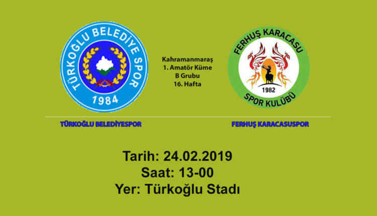 Türkoğlu Belediyespor, Kahramanmaraş 1. Amatör Küme B Grubu 16. haftasında sahasında Ferhuş Karacasuspor’u konuk edecek.