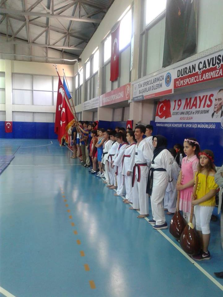 Kutlamalar Saygı duruşu ve İstiklal Marşı’nın okunmasıyla başlamasının ardından günün anlam ve önemini belirten konuşmaların yapılması, Atatürk’ün gençliğe hitabesi, Gençliğin Atatürk’e cevabı, 19 Mayıs konulu şiirlerin okunması ile devam etti. Sonrasında ise tekvando, güreş, kick-boks gösterileri ve halk oyunları gösterileri gerçekleştirildi. Türkoğlu Kaymakamı Sn. Hakan EZGi 19 Mayıs Atatürk’ü Anma Gençlik ve Spor Bayramı münasebetiyle düzenlenen kutlama programında emeği geçen herkese teşekkür etti.