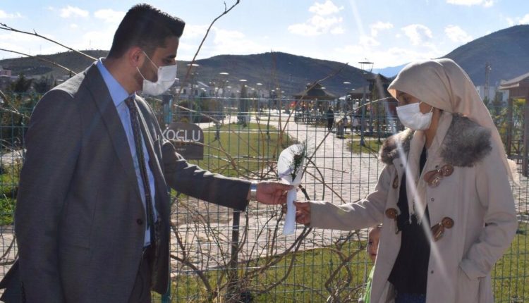 Düzenlenen etkinlikte Türkoğlu’nda cadde ve sokaklarda kadınlara çiçek verilerek kadınlar günü kutlandı.