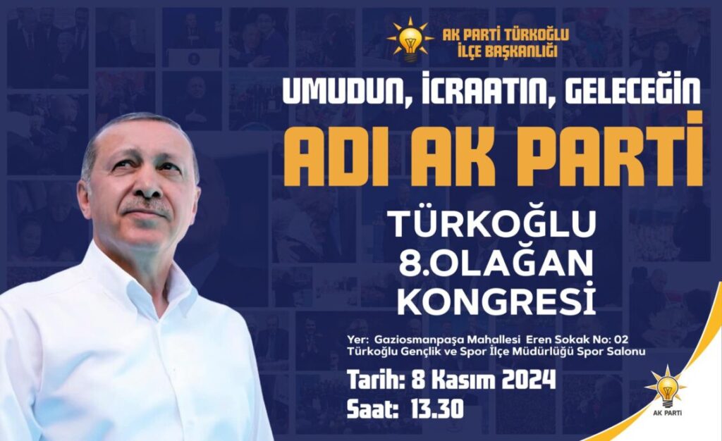 AK Parti Türkoğlu İlçe Başkanı Mehmet Ali Şen kongreyle ilgili bilgi vererek partilileri ve vatandaşları Türkoğlu İlçe Kongresine davet ederken şu açıklamayı yaptı: “İlçemizin Kongre heyecanını birlikte yaşamak için tüm hemşehrilerimizi 8 Kasım Cuma günü Saat: 13:30’da Türkoğlu Gençlik ve Spor İlçe Müdürlüğü Spor Salonunda yapacak olduğumuz 8. Olağan Kongremize davet ediyorum.”