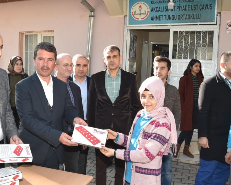 Osmanlılar döneminde şehzadeler tarafından oynanan ve unutulmaya yüz tutmuş, zeka ve strateji geliştirme oyunu olan mangala oyun setlerini Türkoğlu Belediye Başkanı Osman Okumuş, İlçe Milli Eğitim Müdürü Adem Aydoğan, Kahramanmaraş Sütçü İmam Üniversitesi Ata Sporları Topluluğu Akademik danışmanı Tuğrul Avcı ile birlikte Akçalı Şehit Piyade Üst Çavuş Ahmet Tündü İlk ve Ortaokulu öğrencilerine dağıtımını gerçekleştirdiler.