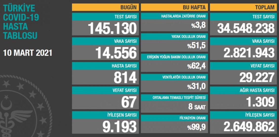 Sağlık Bakanlığı tarafından 10 Mart koronavirüs tablosu, vaka, hasta, test, vefat sayısı ve son durum açıklandı.